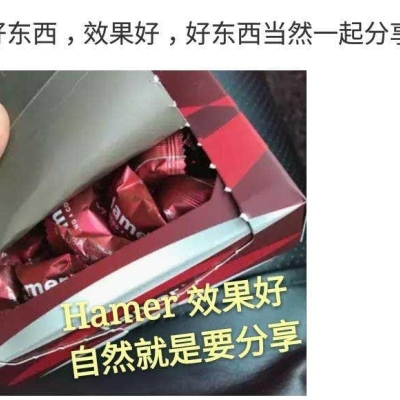 汗马精力糖(Hamer Candy)是由独特的配方制成,主要成分锁阳含有细胞健康所需的营养。汗马精力糖是cun天然食品,能帮助补充细胞营养,本产品的安全度非常高,所有原料均为食品. 马来西亚毒理学实验室化验报告指出:汗马不含任何激素,西药或禁药成分。